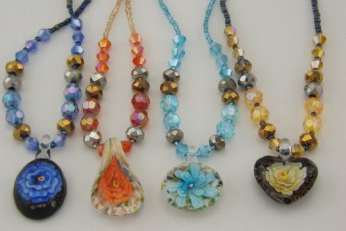 Check Here for Customer Reviews and Buy with Special Price 4 X Fashion 3D Flower Heart lampwork murano glass pendant necklace with glass bead Cord 18"/D Style