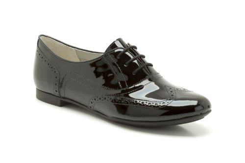 Clarks Womens Carousel Trick Black Pat Leather 7 UK - Slimline brogue styling creates these smart shoes - perfect for school, work or back to college. The sleek almond toe shape and contemporary heel add a fresh twist to a classic look in black patent leather while Cushion Soft layers underfoot ensure they are comfy enough to wear all day, everyday.