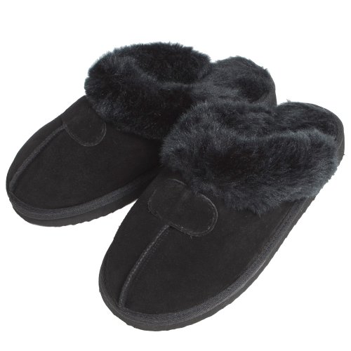 Check Here for Customer Reviews and Buy with Special Price Ladies' EGO Snugg Suede Mule Slippers With Faux Fur Trim & Lining Black UK 6