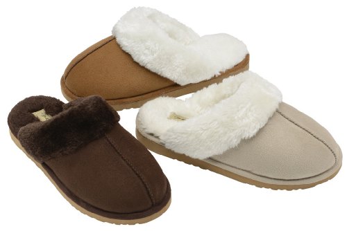 Check Here for Customer Reviews and Buy with Special Price Ladies Famous DUNLOP SARAH faux suede mule slippers with faux fur lining & cuff BEIGE size 6 UK