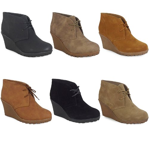 What's new on LoudLook New Ladies Ankle Boots Girls Womens Faux Suede Lace Up Wedge Shoes Size 3 4 5 6 7 8 - See Details :