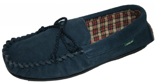 Mens Genuine suede leather Moccasins with hardwearing PVC sole Navy size 9 - Mens Famous DUNLOP brand suede leather Moccasins, tartan lining & rubber sole UK sizes 6,7,8,9,10,11,12,