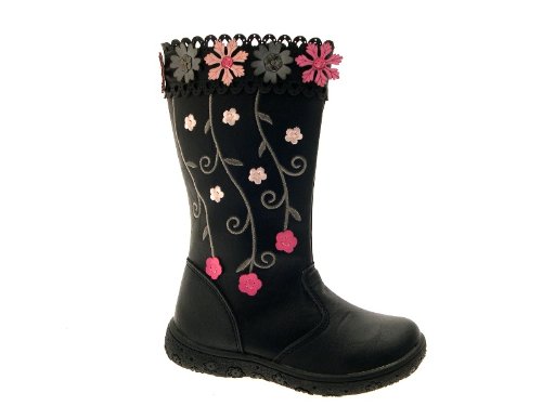 Check Here for Customer Reviews and Buy with Special Price NEW GIRLS KIDS CHILDRENS FAUX LEATHER STITCHED FLOWER BIKER RIDING BOOTS BLACK SHOES SIZE UK 11