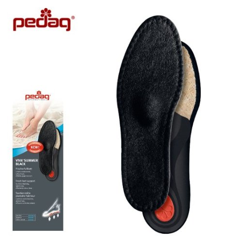 Pedag Viva "Summer Black" E44 UK G10 - Product description: On this barefoot foot support you will walk through the summer as if 'on air'. Summer and sun make you feel easy and relaxed - but tired and sweaty feet that often come up in the sunny season are not that relaxing. With our fresh foot support pedag VIVA® SUMMER you won't have to worry about that anymore. It makes your feet feel just as easy and relaxed as you do - even without wearing socks. Feel free to take off your shoes and enjoy walking along a river or over a lawn - t