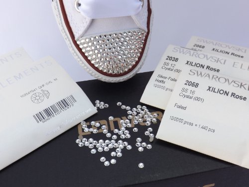 Pimp My Shoes Full 280Pcs Crystal Kit - 240Pcs X Ss16 Swarovski Platinum Foiled Clear Crystals Plus DIY Kit - Full 280pc crystal kit - includes 240 stunning ss16 swarovski crystals perfect for customising junior & adult trainers. We are also including in the price various swarovski crystal size gap fillers because every converse toe cap is different. We are including 10x ss5, 10x ss7, 10x ss10, 10x ss12, ss14 swarovski platinum foiled crystals for gap fillers. Ss16 swarovski clear platinum foiled rose enchanced crystals are the best you can get and are the actual crystals we use on all our products. Plu