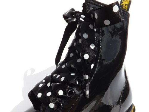 Check Here for Customer Reviews and Buy with Special Price Pimp My Shoes Stunning Double Faced Satin Ribbon Shoelaces / Bootlaces With Aglets For Dr Martens Black Polka Dot To Fit Boot 1460w 8 eyelet Boot
